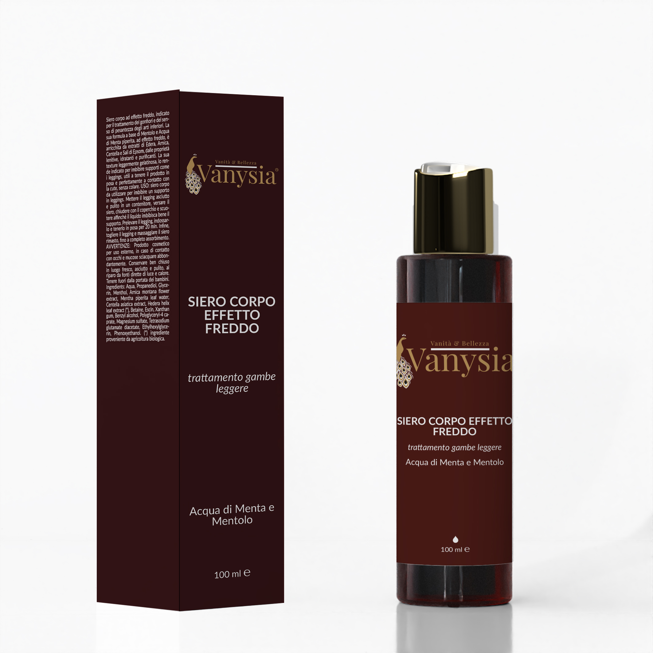 Aqua, Propanediol, Glycerin, Menthol, Arnica montana flower extract, Mentha piperita leaf water, Centella asiatica extract, Hedera helix leaf extract (*), Betaine, Escin, Xanthan gum, Benzyl alcohol, Polyglyceryl-4 caprate, Magnesium sulfate, Tetrasodium glutamate diacetate, Ethylhexylglycerin, Phenoxyethanol.(*) ingrediente proveniente da agricoltura biologica.